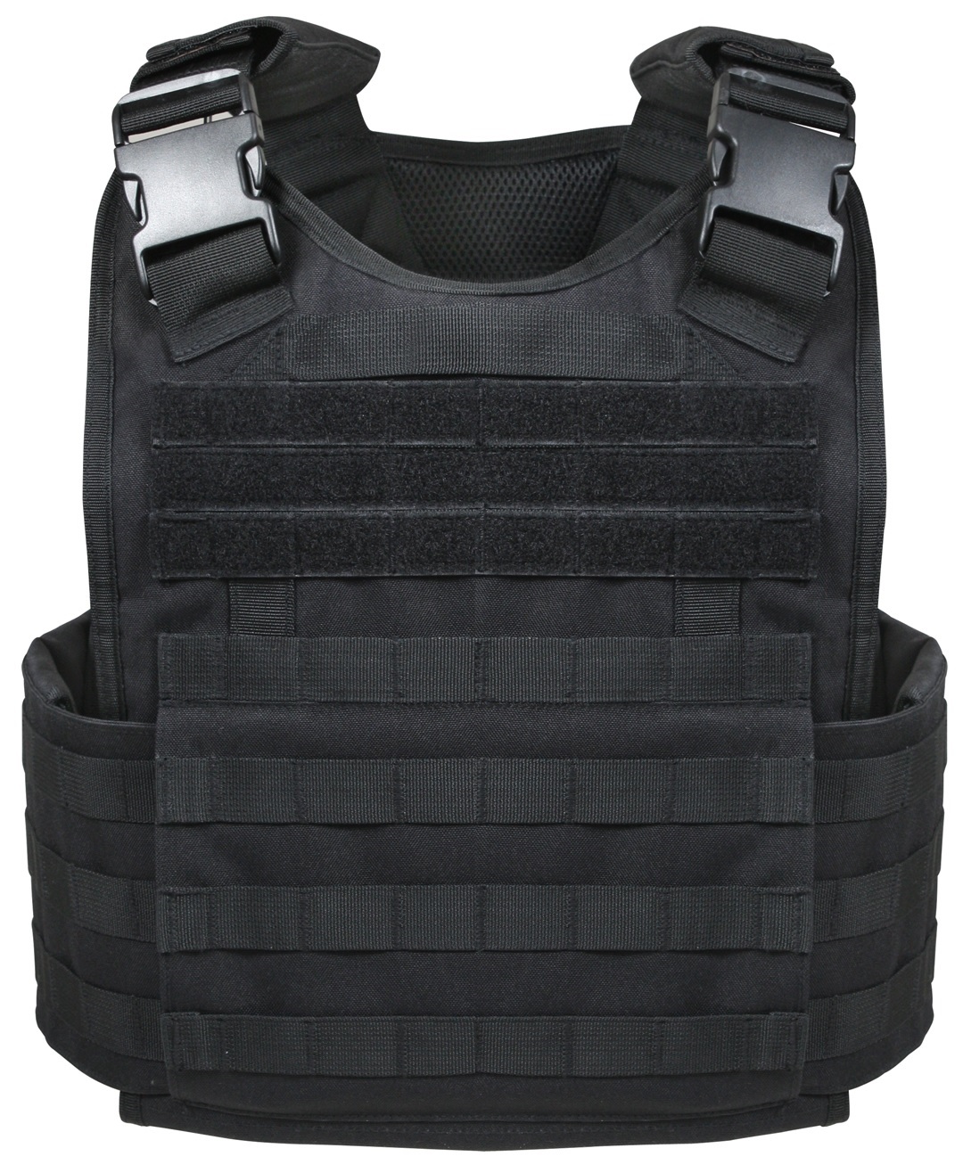 Rothco's Molle Plate Carrier Vest is constructed with Heavy Weight 600 Denier Polyester and features Molle webbing that covers most of the vest and is ideal for attaching modular pouches and accessories. The vest has 13.75" x 10.25" x 1" front and back internal sleeves for soft armor and plates and the vest includes an adjustable / detachable cummerbund with pockets for side panel plates (plate & soft armor not included). In addition, the vest features adjustable shoulder straps with detachable pads, emergency drag handle, padded mesh interior and quick release side buckles for easy removal. The Plate Carrier Vest comes in Black, Coyote, Olive Drab and one size fits most.